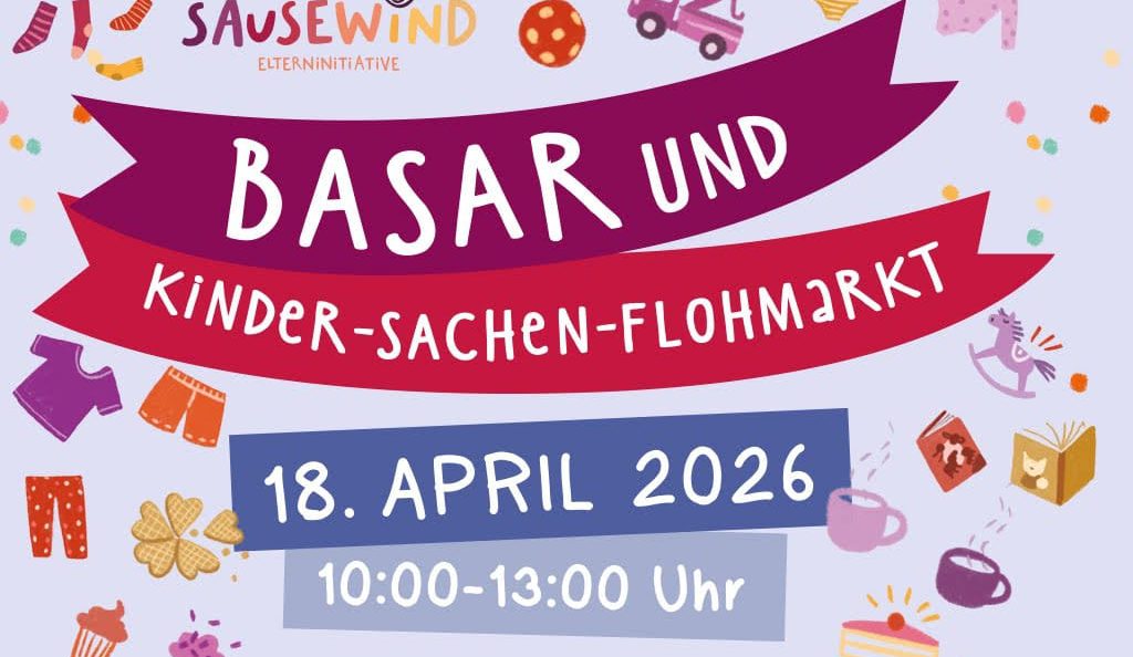 Der Basar der Kinderkrippe Sausewind in Mainz lädt am 18. April 2026 zum Stöbern, Entdecken und Genießen ein. Freut euch auf einen liebevoll organisierten Kinder-Sachen-Flohmarkt mit tollen Fundstücken rund ums Kind. Kinderschminken und eine Tombola sorgen für strahlende Kinderaugen. Dazu gibt es leckeres Essen, selbstgebackene Kuchen und viele weitere Köstlichkeiten.
